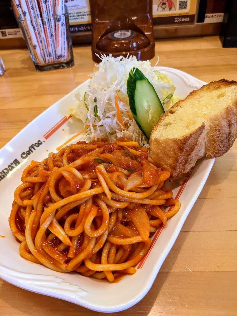 For guests who prefer something more filling, the ミックスサンド is a reliable choice. This mixed sandwich is hearty enough for a quick lunch yet still light enough for a casual café visit. Meanwhile, those craving something warm and nostalgic often gravitate toward the 太めのナポリタン. This thick-style Napolitan pasta has a comforting feel and fits perfectly within the café’s casual dining style. It’s one of those dishes that makes the menu feel more complete and satisfying.